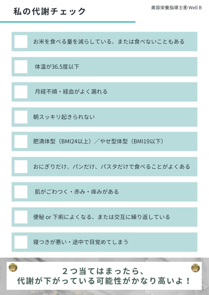 自分の代謝がどんな状態か気になった人は、こちらをタップして「代謝チェック」を今すぐ試してみてください☺️